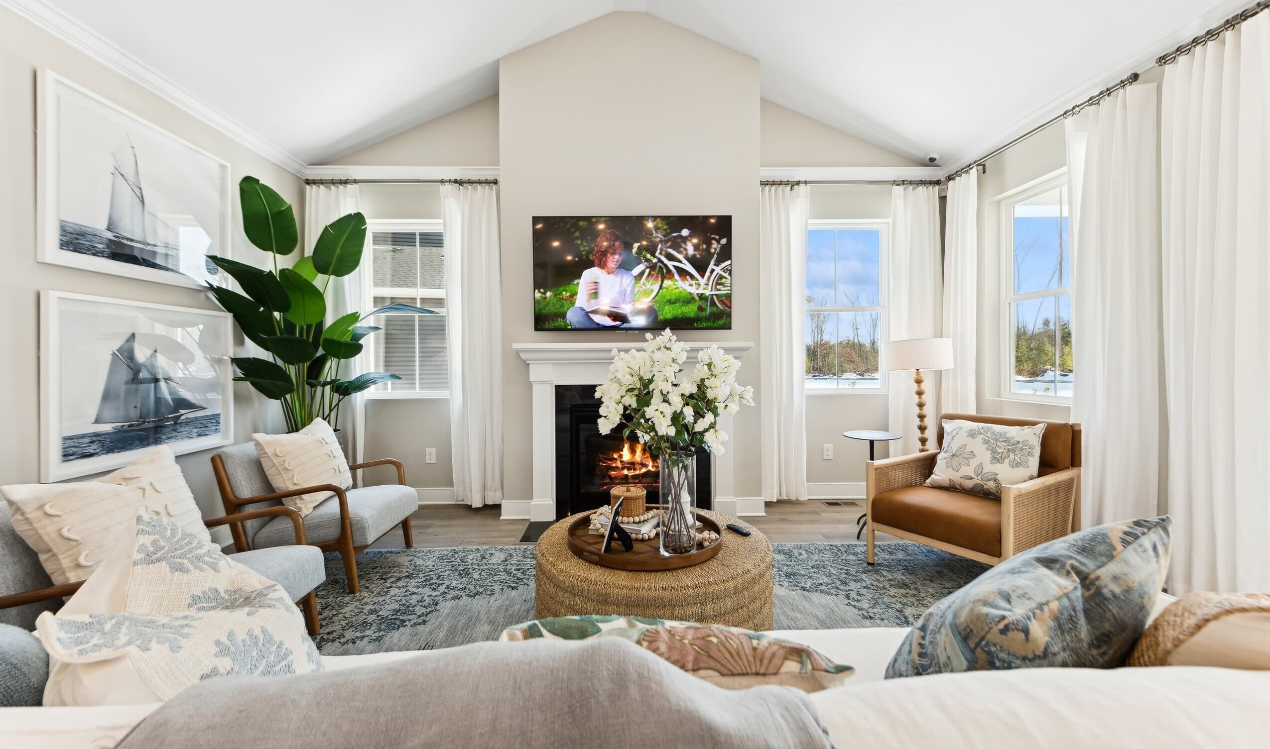 Great room with vaulted ceiling
