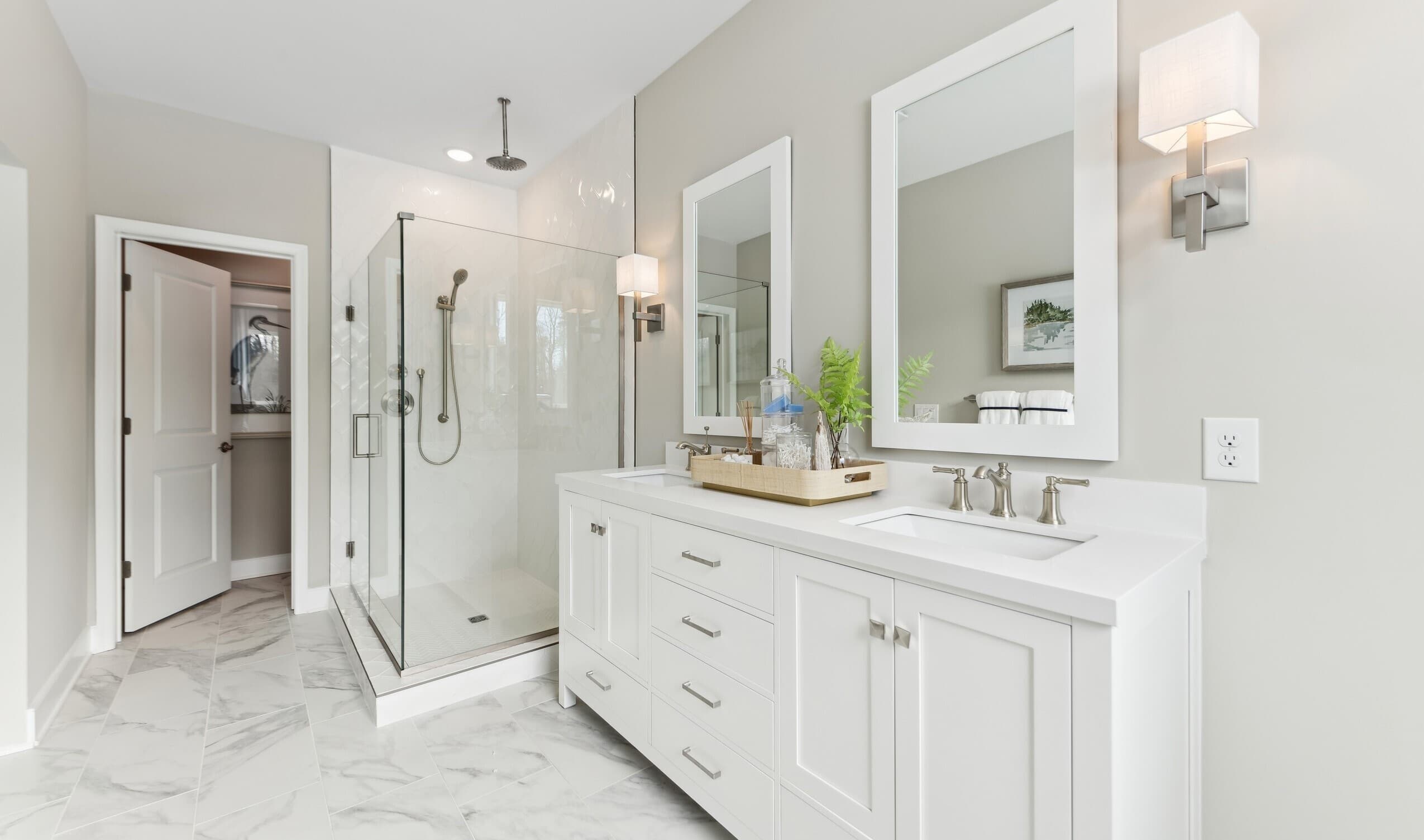 Primary bath with glass-shower enclosure